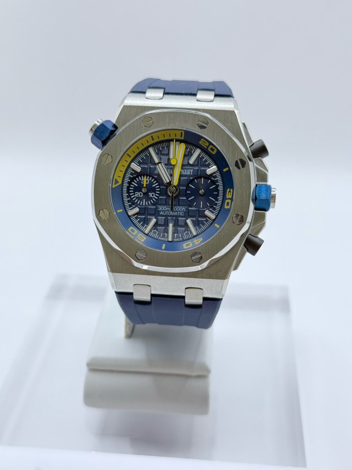 로얄오크 오프쇼어 다이버 크로노그래프 블루다이얼 재팬VK 무브먼트 사파이어 글라스 슈퍼노바 야광적용 316 고강도 스틸 블랙 러버스트랩