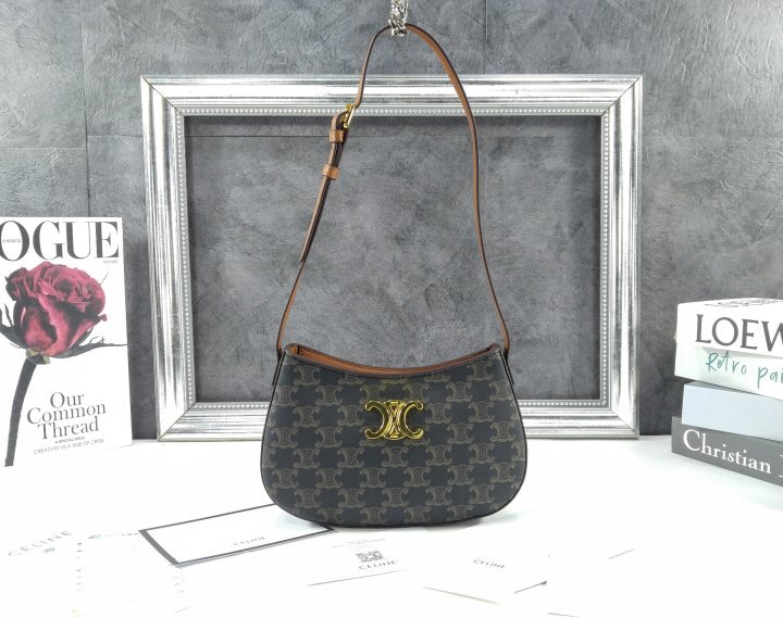 트리옹프 캔버스, 카프스킨 트리밍 안감: 램스킨 골드 피니시 숄더백으로 착용 가능 지퍼 클로저 메인 수납공간 1개 내부 플랫 포켓 1개 길이 조절 가능한 스트랩