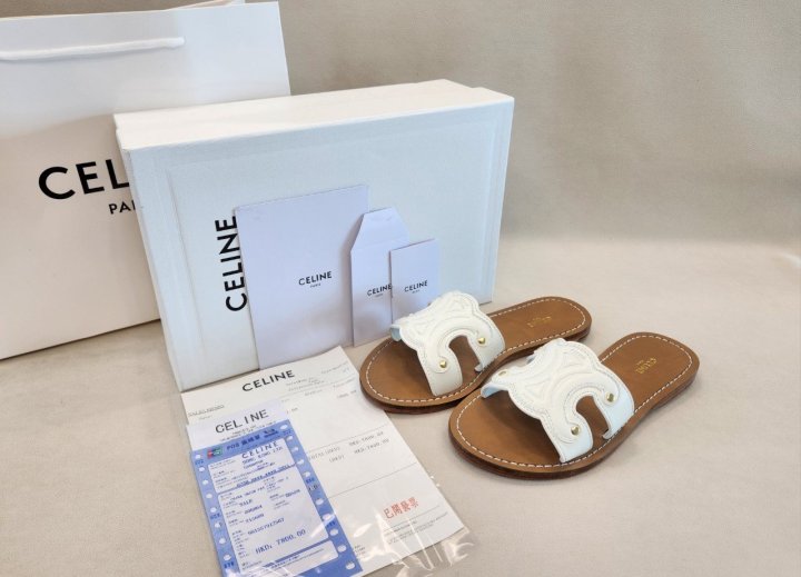 [국내배송]셀린느 트리옹프 뮬 카프스킨 화이트 (최상위버전)