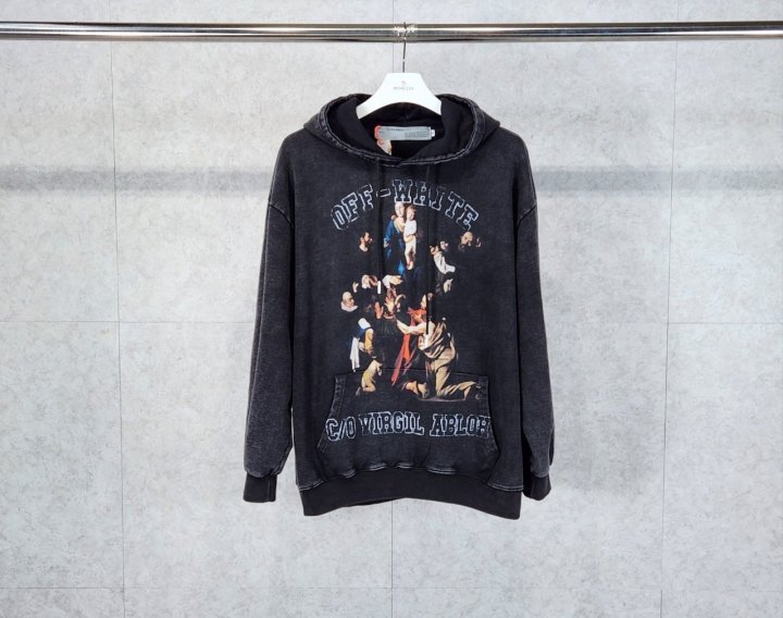 [국내배송]오프화이트 프린팅 워싱 후드티