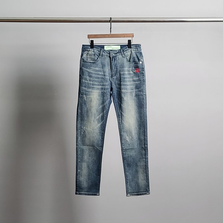 [국내배송]오프화이 로고자수 워싱 청바지