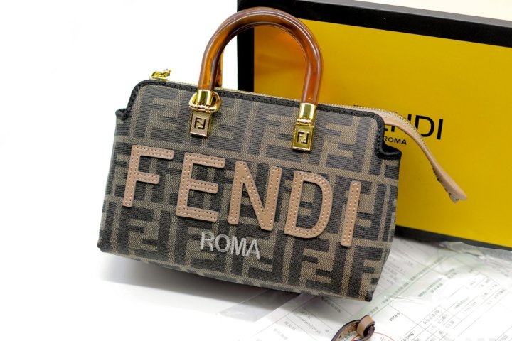 [국내배송]펜디 FF 자카드 로고 바이더웨이 보스턴백 브라운