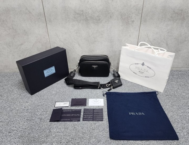 프라다 사피아노 가죽 숄더백 입고 되었습니다 금속부터 삼각로고 사피아노가죽, 레이저 레터링, 각인, 포장까지 정품급 입니다 선물용으로 너무 좋은제품 입니다. 사진동일 케이스, 더스트, 쇼핑백, 풀구성 출고 입니다.