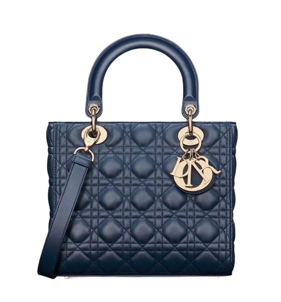 레이디 디올 미디엄백(미드나잇 블루/까나쥬/램스킨)