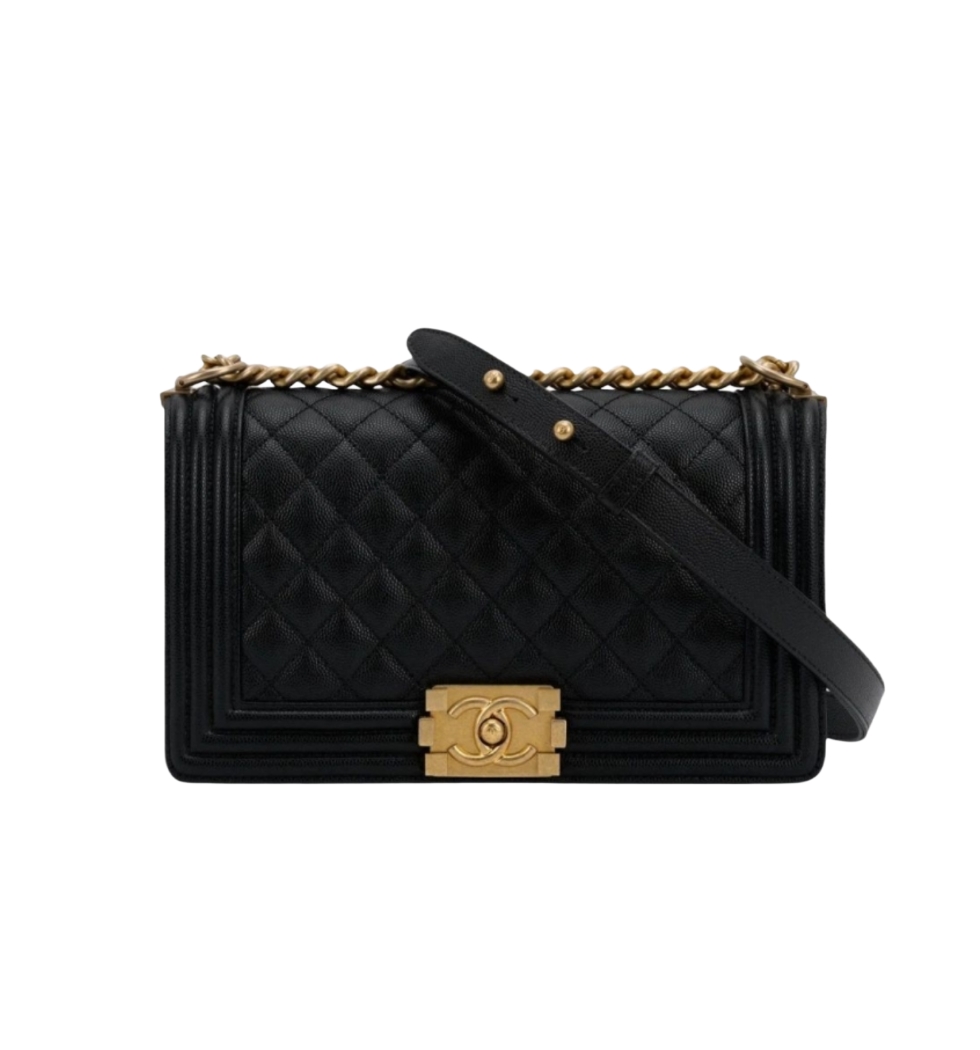 *정품가죽* 보이미디엄 플랩백(블랙/금장/캐비어)