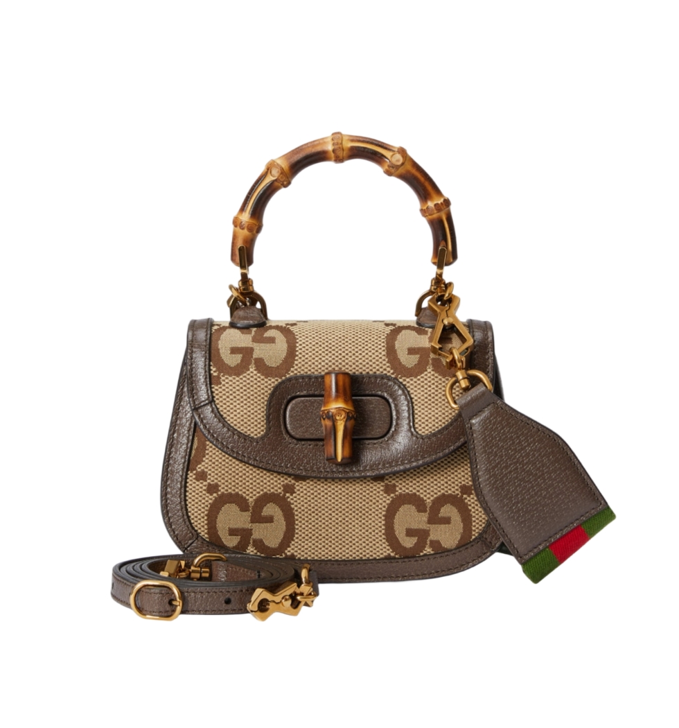 [프리미엄/해외배송]구찌 뱀부 1947 미니 탑 핸들백(GG점보/브라운)