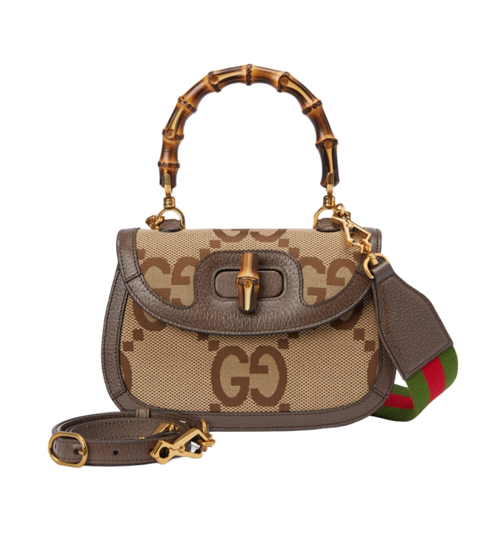 [프리미엄/해외배송]구찌 뱀부 1947 스몰 탑핸들백(GG점보/브라운)