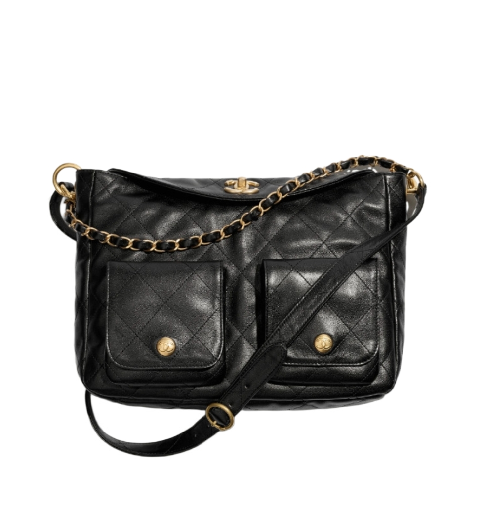 더블 포켓 호보 백 라지(블랙/금장/램스킨)
