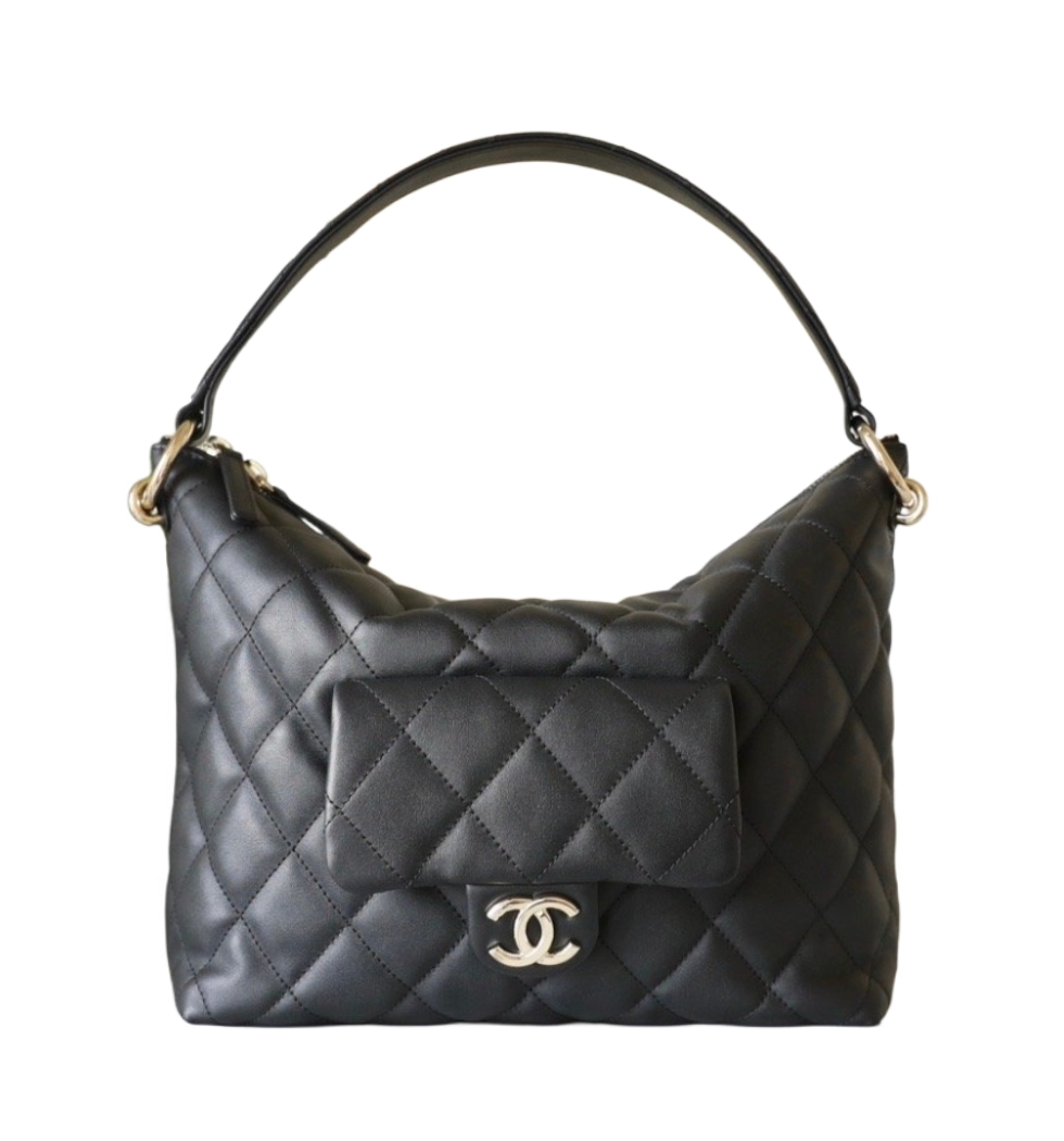 [프리미엄/해외배송]샤넬 빈티지 퀼팅 호보백(블랙/금장/카프스킨)