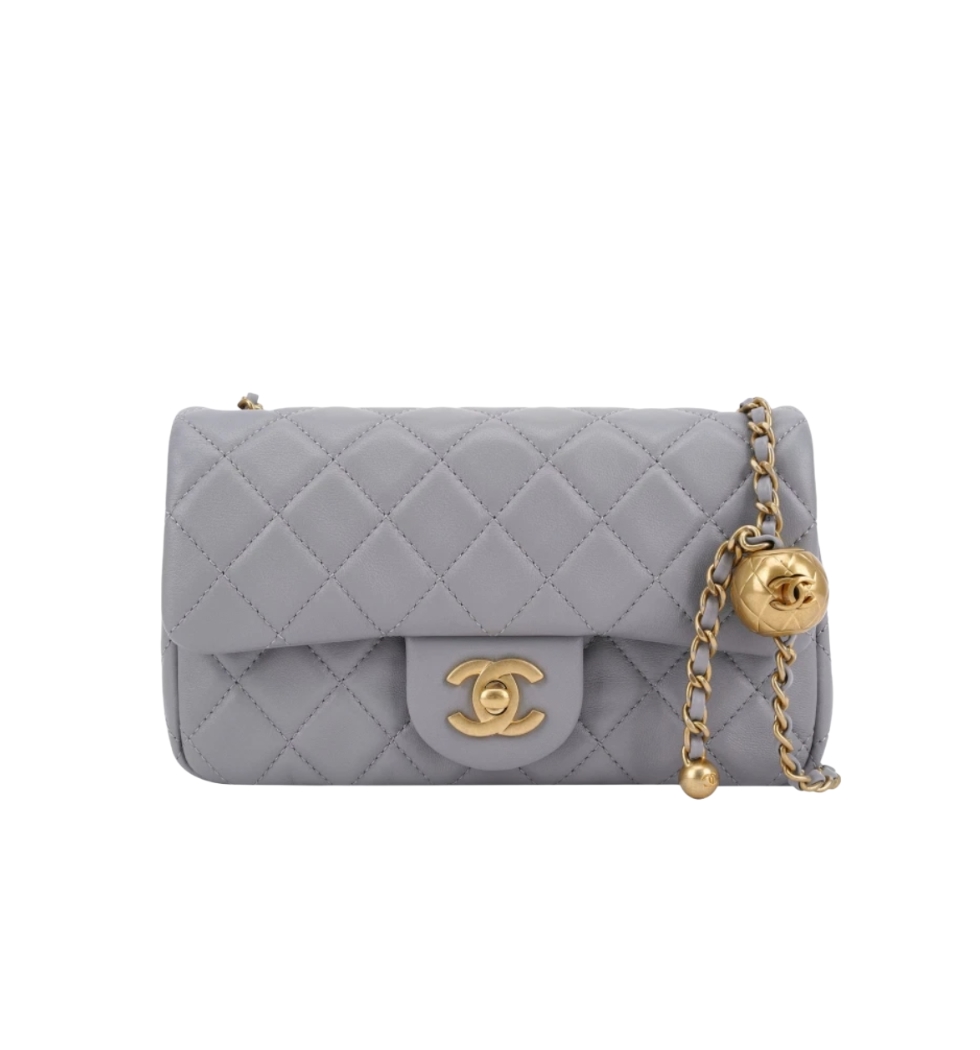 [프리미엄/해외배송]샤넬 클래식 골드볼 미니 플랩 백(그레이/금장/램스킨)