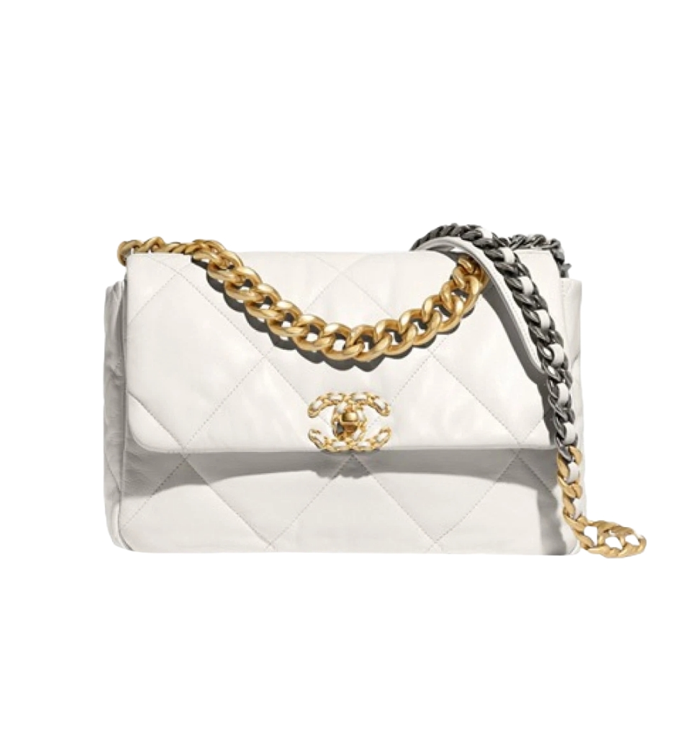 [프리미엄/해외배송]19백 라지 플랩 백(화이트/금장/램스킨)