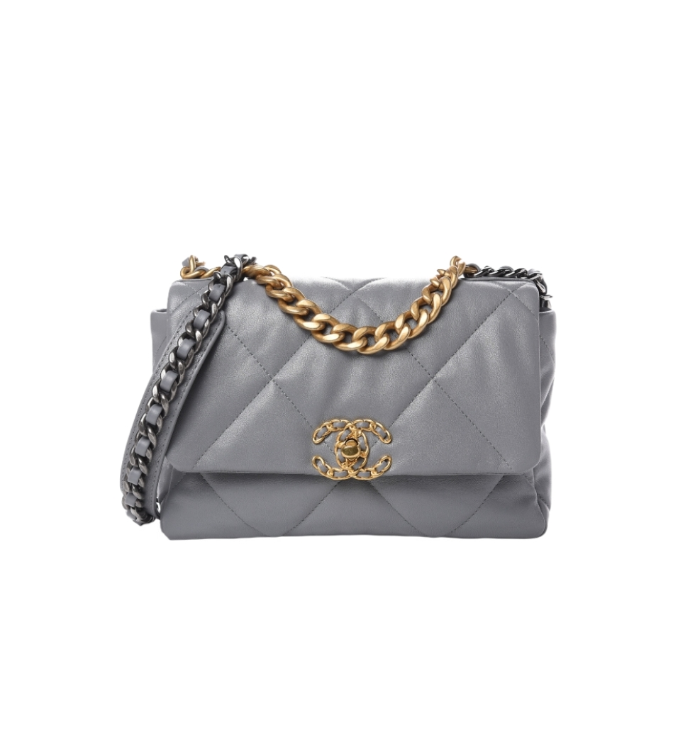 [프리미엄/해외배송]샤넬 19백 스몰 플랩 백(그레이/금장/램스킨)