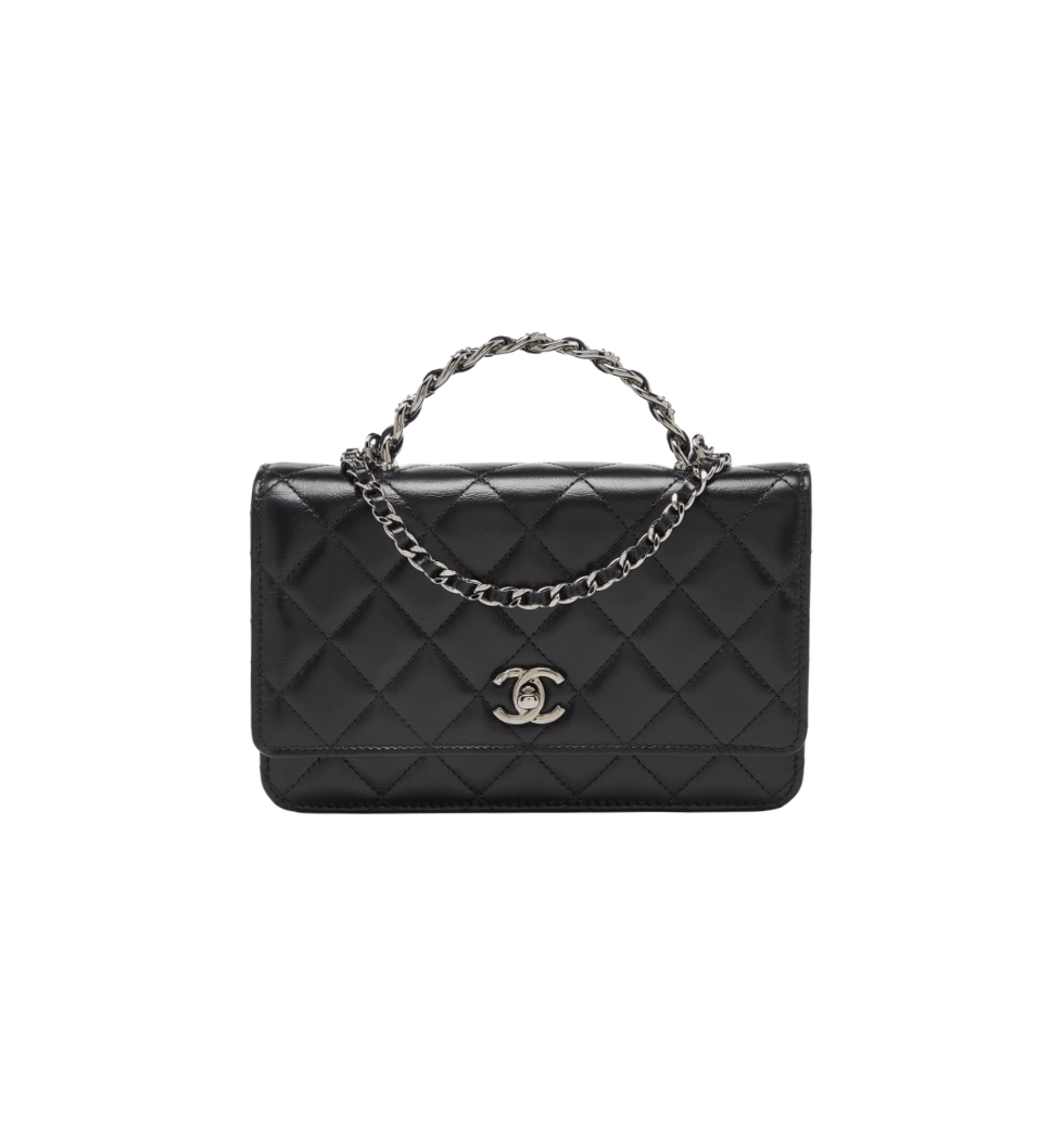 [프리미엄/해외배송]샤넬 WOC 체인 탑핸들 싱글 플랩 백(블랙/은장/카프스킨)