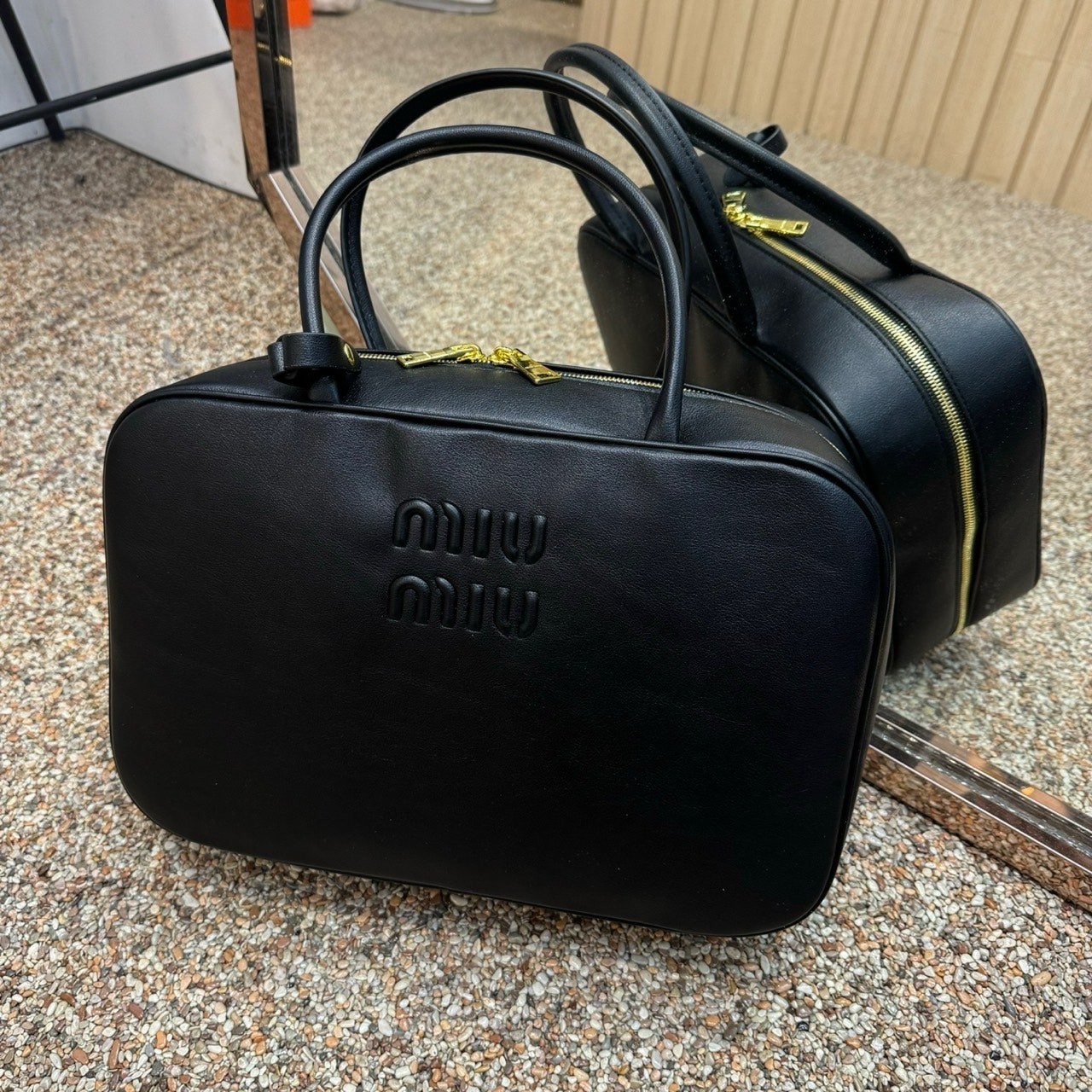[국내배송]미우미우 탑핸들 토트백 블랙 꼬냑