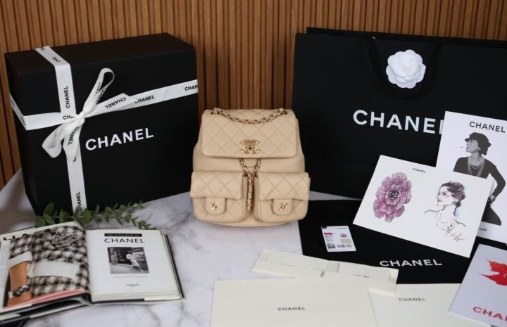 -샤넬 백팩중 가장 인기있는 모델이며, 베이지 컬러로 다양한 스타일에 잘어울려 활용도가 높습니다.