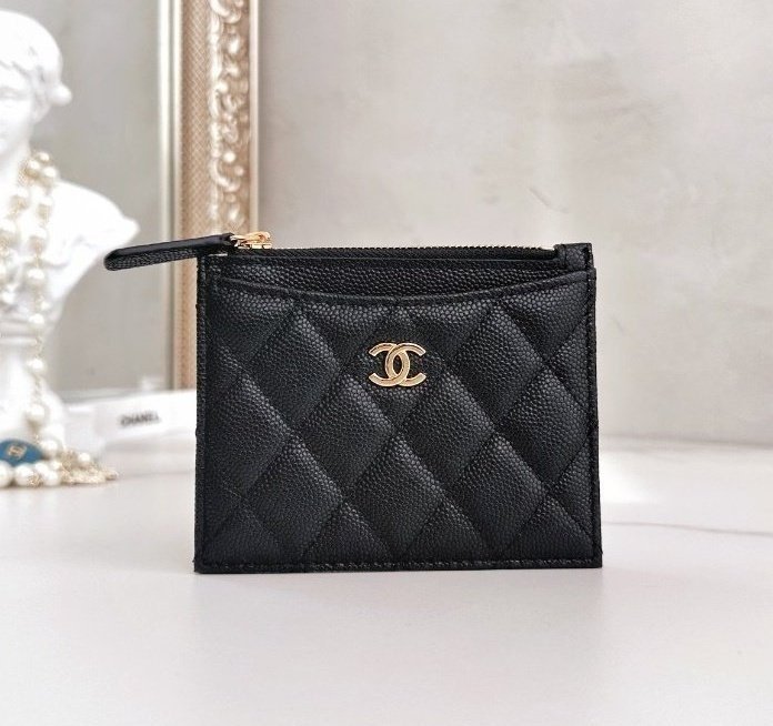 [국내배송]샤넬 클래식 지퍼 카드지갑 캐비어 블랙 금장