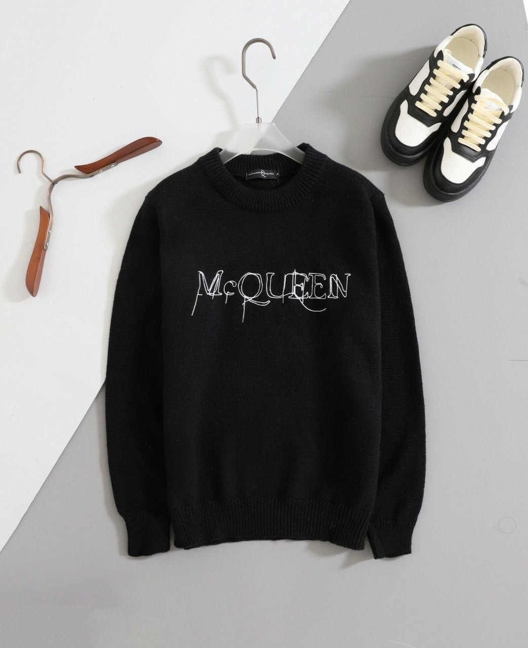 [국내배송]알렉산더맥퀸 [ M*QUEEN ] 수입 울 스웨터 화이트 메탈로고 크루넥