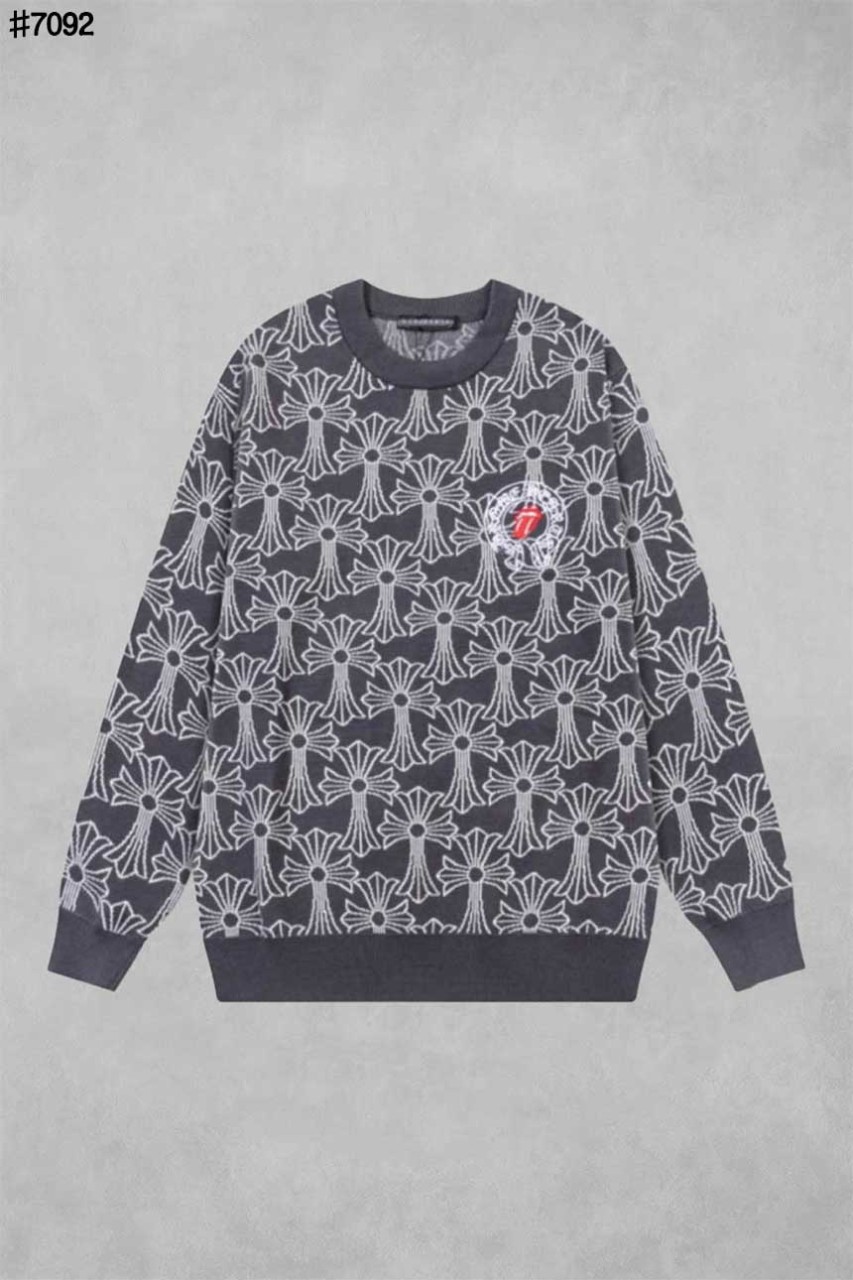 [국내배송]크롬하츠 X 롤링스톤 자수 로고 세메터리 울 자카드 니트 풀오버