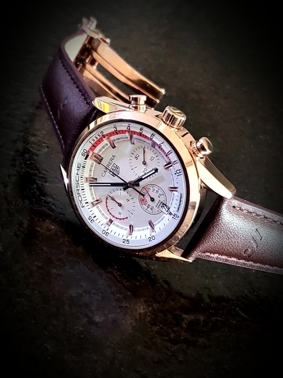 전체로즈골드의 고급스러움에 브라운 가죽밴드(911로고각인)