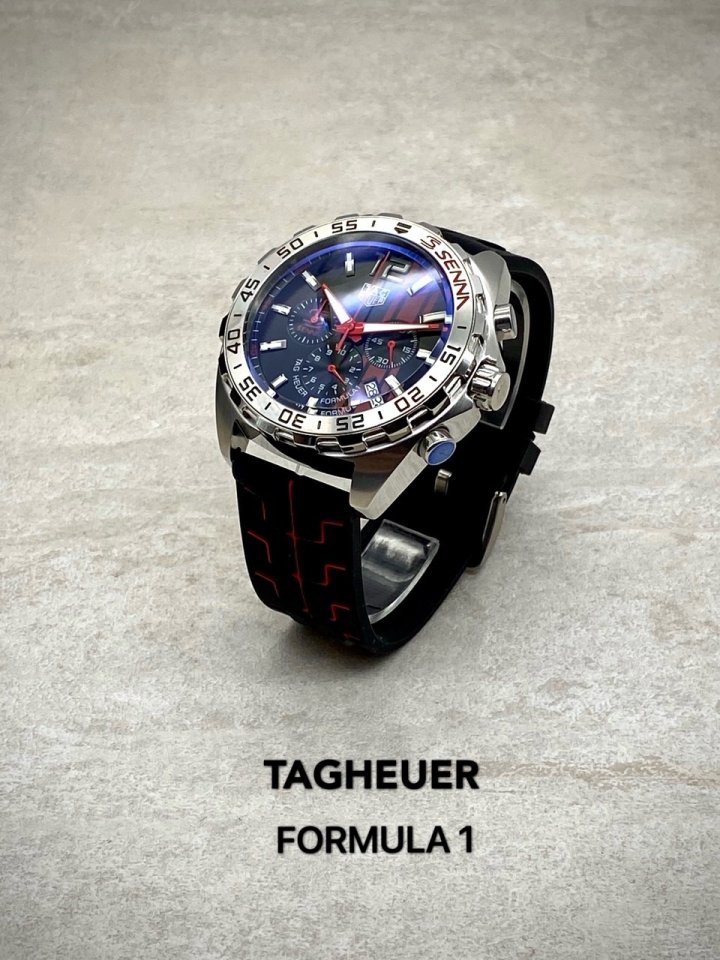 카레이싱에서 영감을 얻은 클래식 하면서도 현대적인 스포츠시계인 까레라 칼리버 호이어 01 세나 리미티드 에디션 입니다 크롬베젤과 속도 스포츠카 계기판을 연상시키는 다이얼 디자인 태그호이어 특유의 스포츠카 연상시키는 타이어 러버스트랩의 조화가 고급스러움을 더합니다 데일리 워치로 강추합니다 고급 케이스 포함