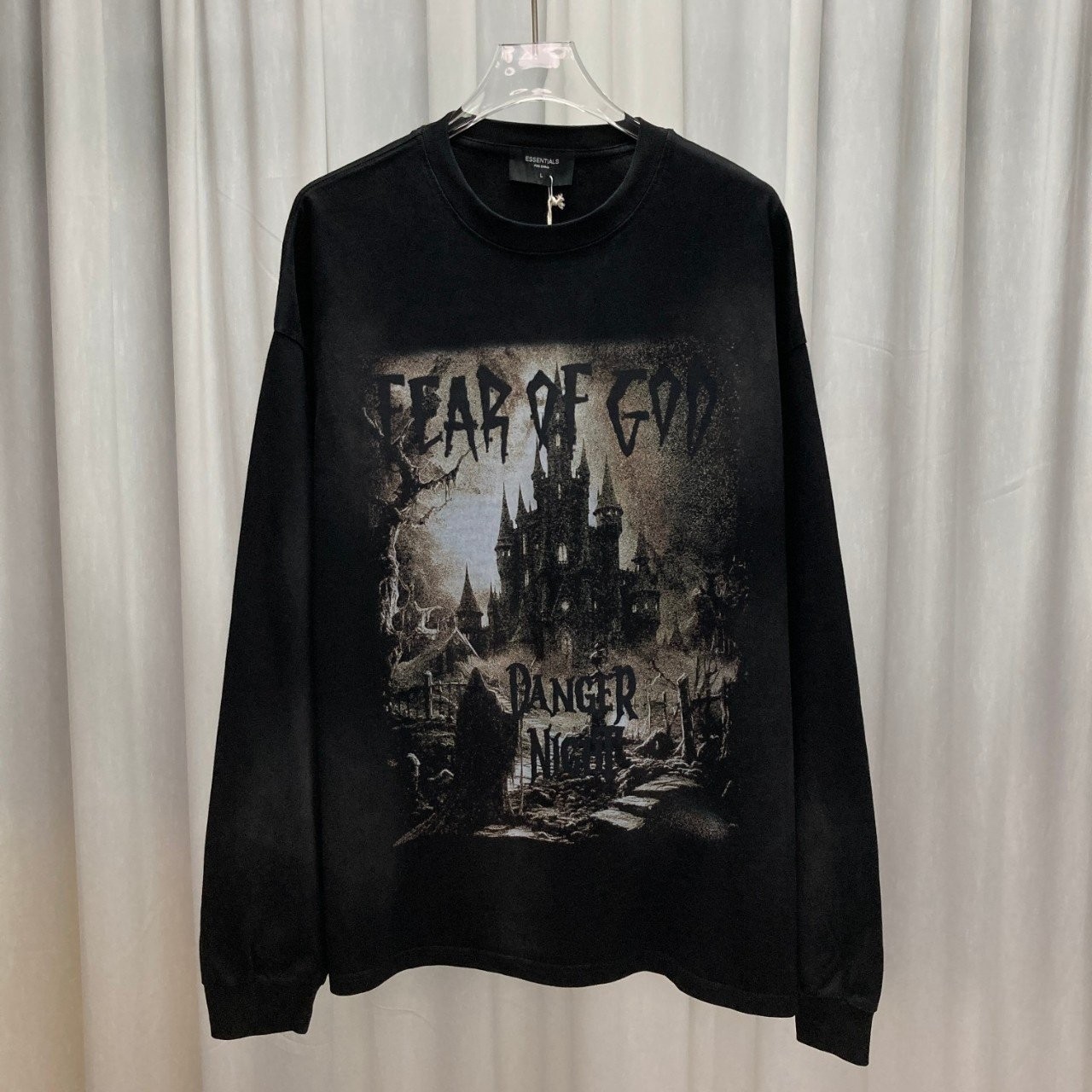 [국내배송]피어오브갓 FOG ESSENTIALS 다크캐슬 슬로건 로고 프린트 워싱 티셔츠