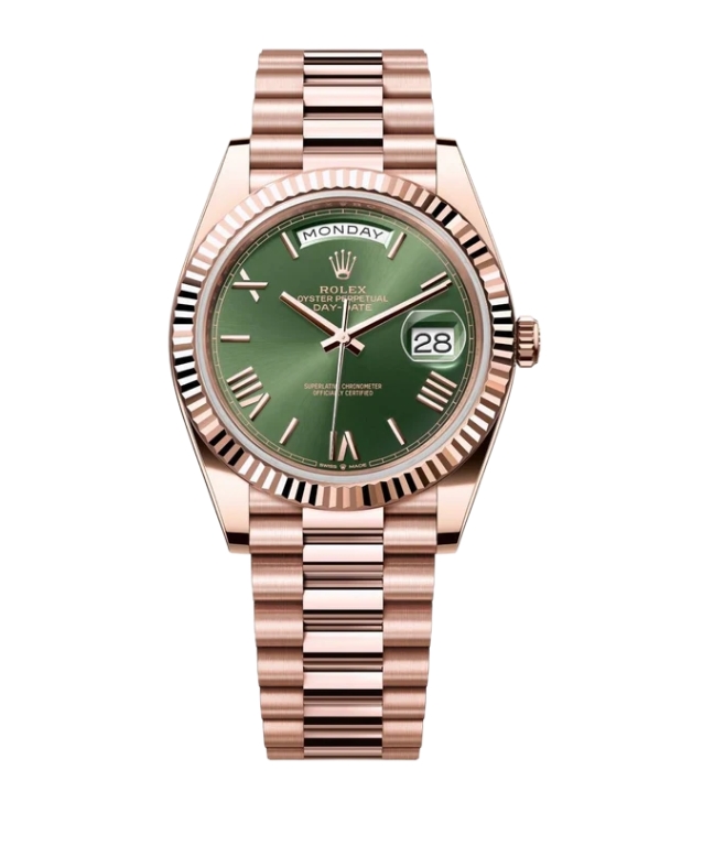 롤렉스 데이데이트 40mm Counterweight 228235-0025 Full Rose Gold Roman Numerals Olive Green Dial[ARF]