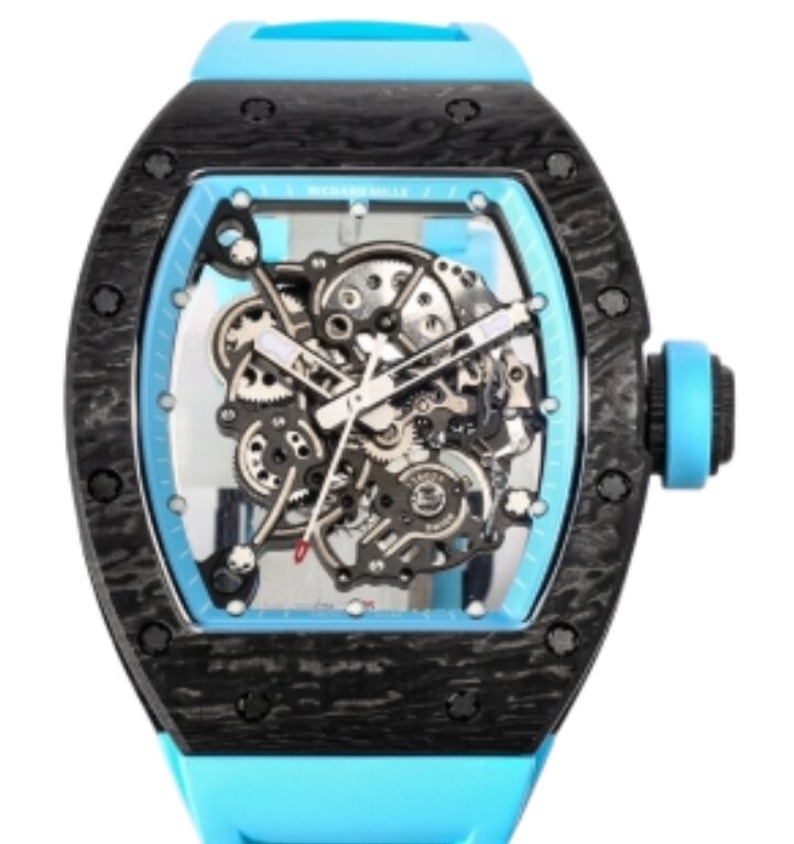 리차드밀 RM055 43mm Black Carbon Fiber Light Blue Rubber Strap Light Blue Skeletonized Dial[BBR]
