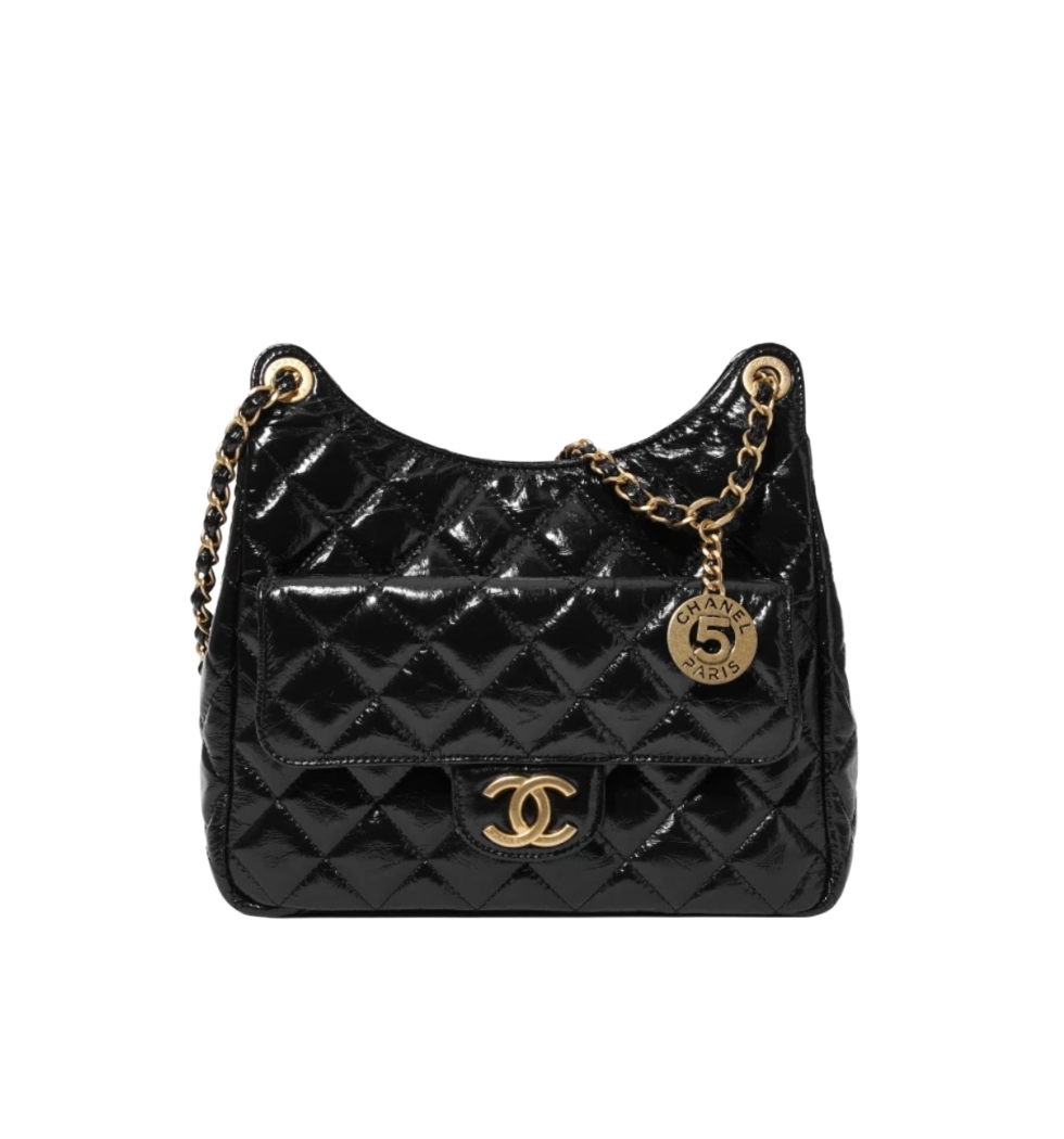 [프리미엄/해외배송]샤넬 넘버5 팬던트 호보백 미디엄(블랙/금장/크럼플드 카프스킨)