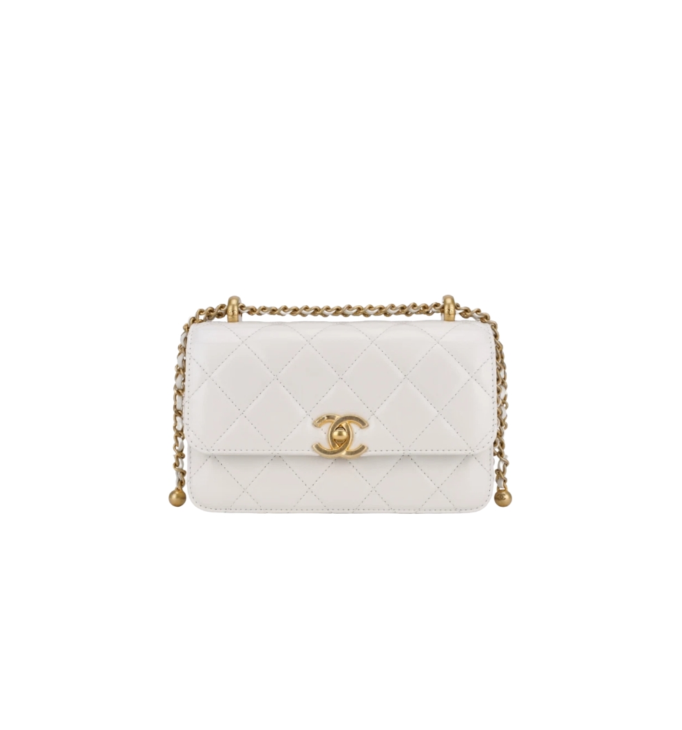 클래식 더블 골드볼 미니 플랩 백(화이트/금장/카프스킨)