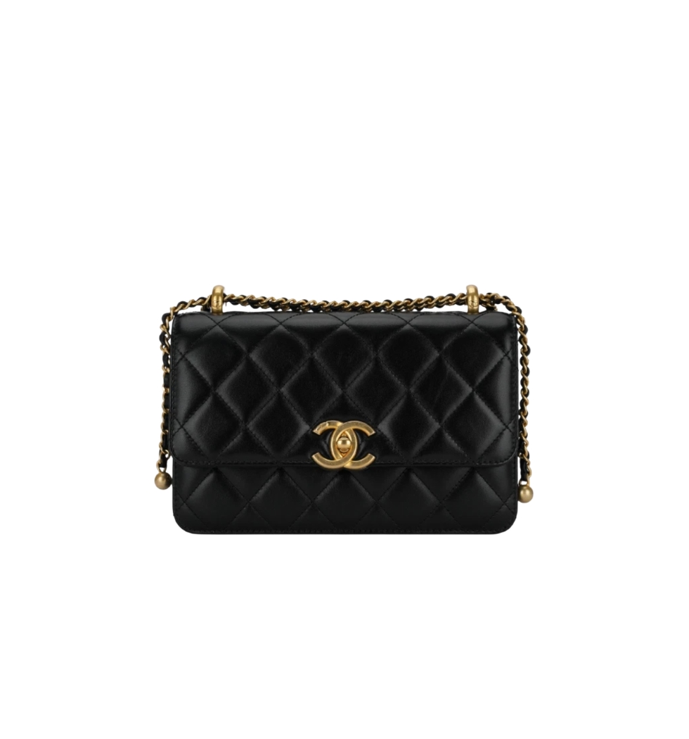 클래식 더블 골드볼 스몰 플랩 백(블랙/금장/카프스킨)
