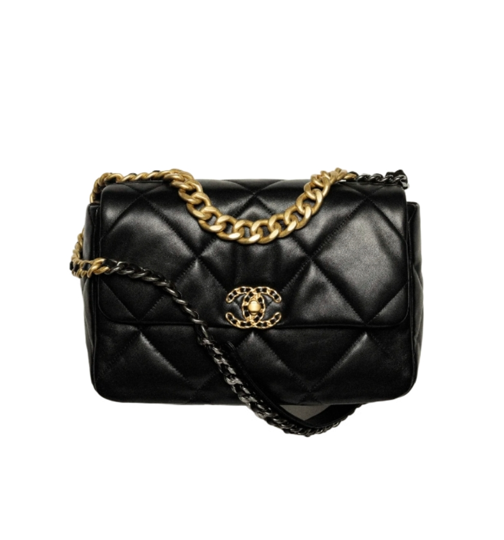 [프리미엄/해외배송]19백 라지 플랩 백(블랙/금장/램스킨)